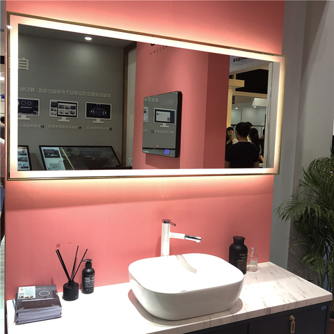 Modern ucuz fiyat otel modeli duvara monte mp3 android saat odası ışık ip65 büyük ayna akıllı bluetooth banyo aynaları led
